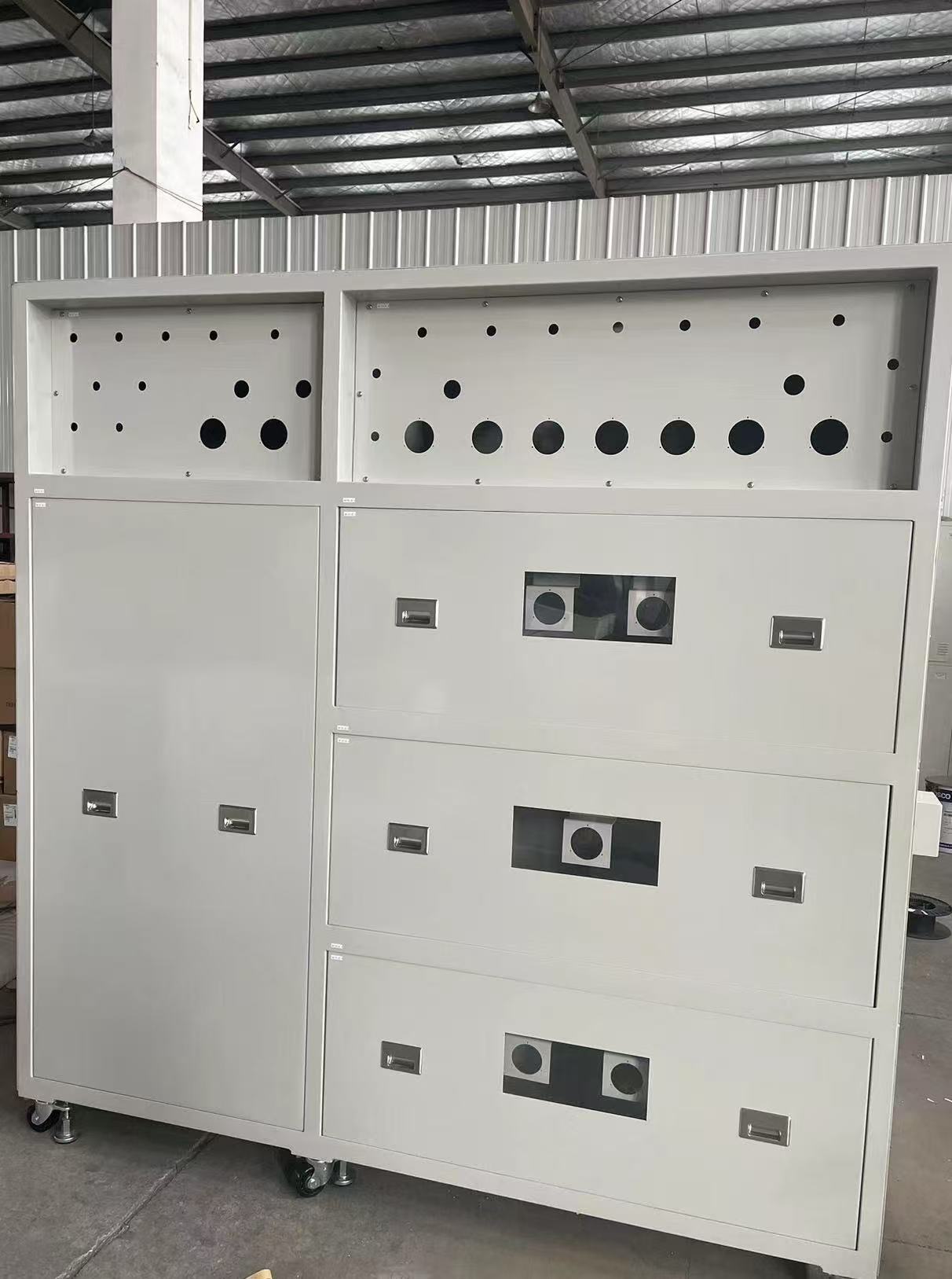 电控柜是按电气接线要求将开关设备、测量仪表、保护电器和辅助设备组装在封闭或半封闭金属柜中或屏幅上,其布置应满足电力系统正常运行的要求,便于检修,不危及人身及周围设备的安全的控制柜(箱)。包括(配电柜)(配电箱)(电器控制柜)等,正常运行时可借助手动或自动开关接通或分断电路。故障或不正常运行时借助保护电器切断电路或报警。借测量仪表可显示运行中的各种参数,还可对某些电气参数进行调整,对偏离正常工作状态进行提示或发出信号。常用于各发、配、变电所中。